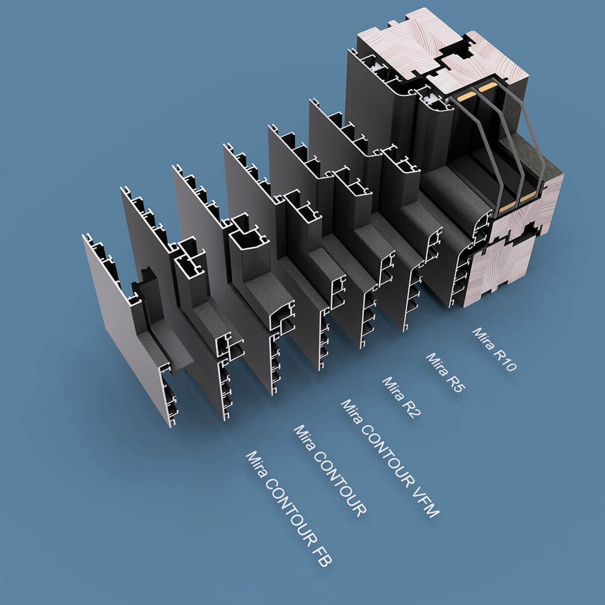 Grâce à la variété des revêtements en aluminium et aux deux épaisseurs de profilés, il est possible d’installer des vitrages jusqu’à 60 mm d’épaisseur. Cela permet d’obtenir de bien meilleurs paramètres thermiques de la structure.
