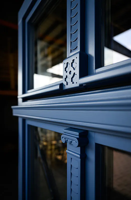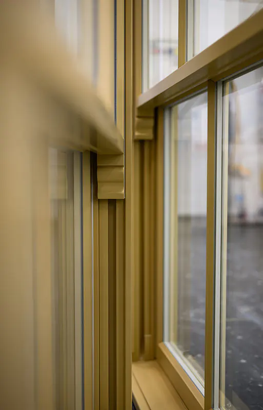 Fenêtres bicolores MSline+. Le châssis de la fenêtre était en placage Winchester et le cadre était de couleur Alux DB.