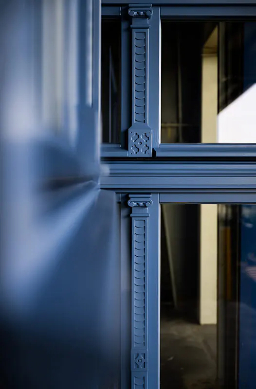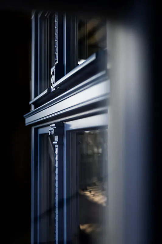 Fenêtres verticales MSline+. Un système d'ouverture oscillo-battant et un vitrage fixe dans le cadre ont été utilisés